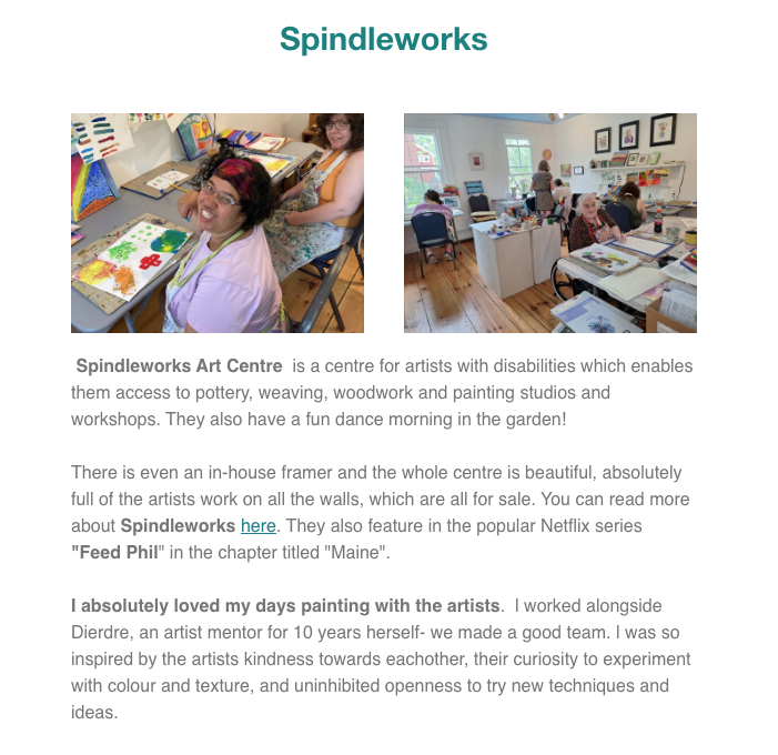 Summer 2025; Spindleworks hosted a week long painting intensive. Similar to an art residency, artists worked closely with international artist Annabel Keatley.